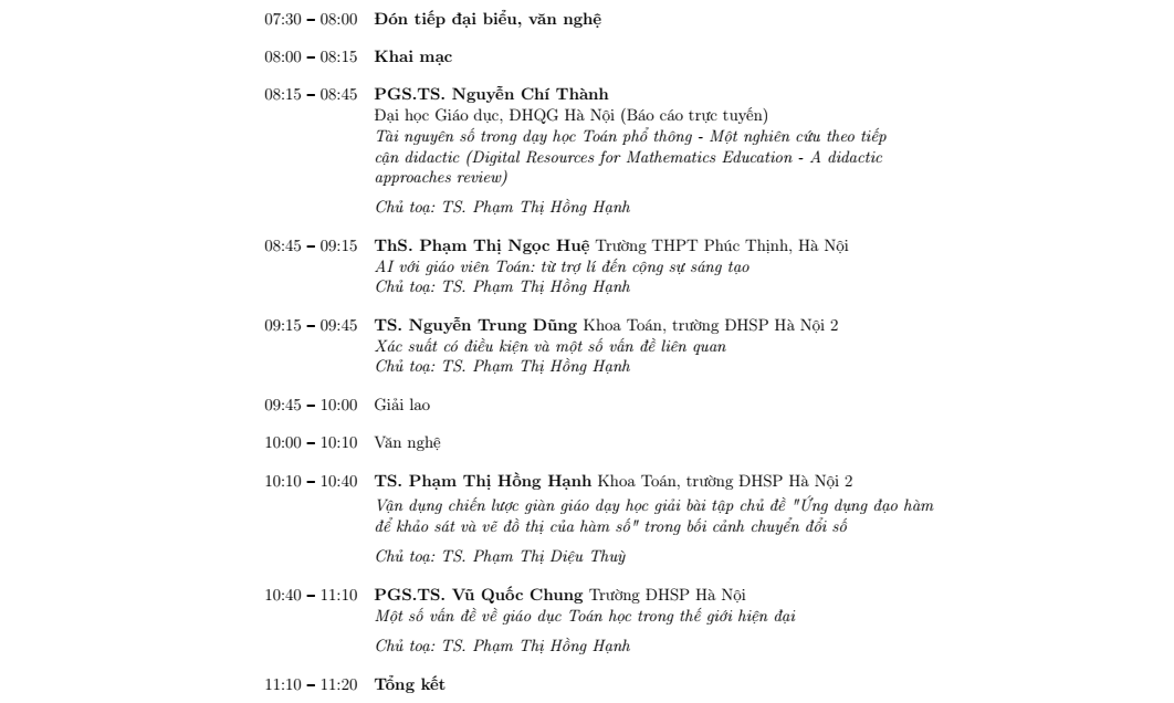 Hội thảo sẽ tập trung thảo luận về các vấn đề cập nhật trong giáo dục toán học và các nghiên cứu mới nhất trong các lĩnh vực